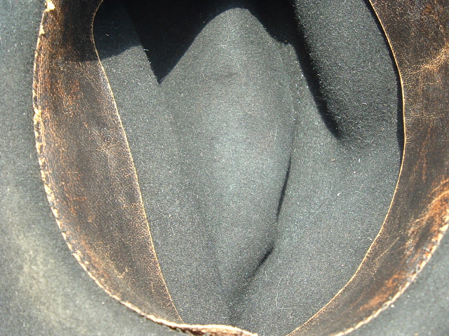 Beautiful Civil War Veteran Officer's Slouch Hat. You don't run across these all the time, black wool slouch hat without holes or damage. The black grosgrain ribbon is intact and in place around the crown. The front retains the Grand Army of the Republic hat badge, with an army officer’s cap cord around the crown. The leather interior sweatband is in place, with some minor loss of stitching. Overall the hat is in excellent condition.