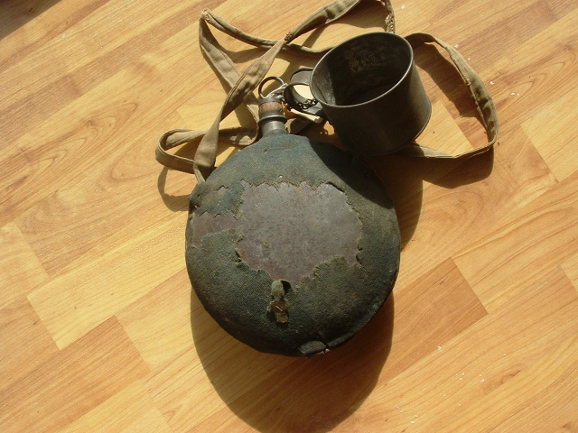 Another bonus is the soldier's drinking cup attached to the canteen via the chain. The cup itself remains in fine condition overall, it may have been added at a later date, nonetheless, a fine looking display.